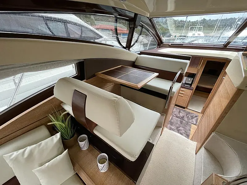 Very large cockpit with access to the technical closet, equipped with bespoke dressers and washing machine. Table in the cockpit with 4 folding chairs, hydraulic gangway also suitable as a gangway crane. Bathing platform with tender supports and inflatable boat with 4 HP motor