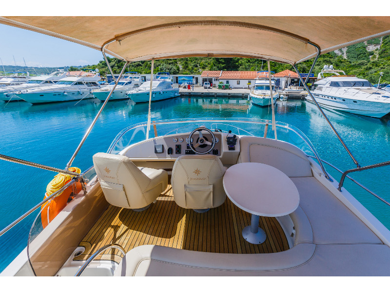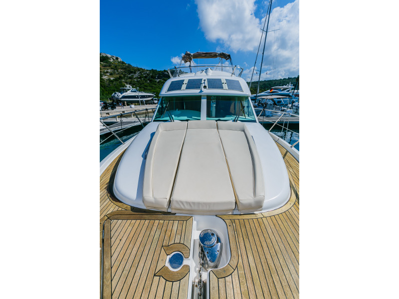 Hydraulic Gangway / Beiboot -Kran, Kühlschrank 12 V / ca. 80 l, Sitzgruppe mit Tisch auf Fly, Yachtkontroller Steuerung (true), 80 Meter verzinkte Ankerkette (true), TV im Salon (true), Schwerer Anker verzinkt, 2 Hebel Micro-Commander Schaltung (true), Generator (true), CD / USB Radio, Elektroherd 220V, Heckdusche, Navigationssystem, Komplette Instrumentierung, Tiefenmesser (true), Elektrische Ankerwinsch, Sonnenliege auf Bug, Elektrische Toilette (true), Internet Router WLAN, Bimini Top (true), Flybridge (true), Sonnenliege auf Fly, Klimaanlage (true), Tisch auf Fly (true), Bugstrahlruder, Mikrowellenherd, Eismachine, Heckstrahlruder, Tisch im cockpit, Badeplattform, Stauraum, Teak auf der Flybridge, Trimmklappen, Teak auf badeplatform, Kompas Fly, Echolot Raymarine ST+ Tridata, Autopilot ST 70