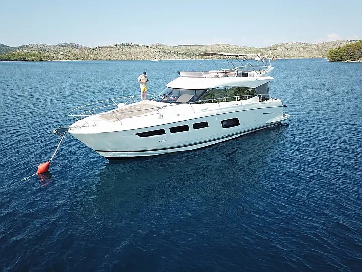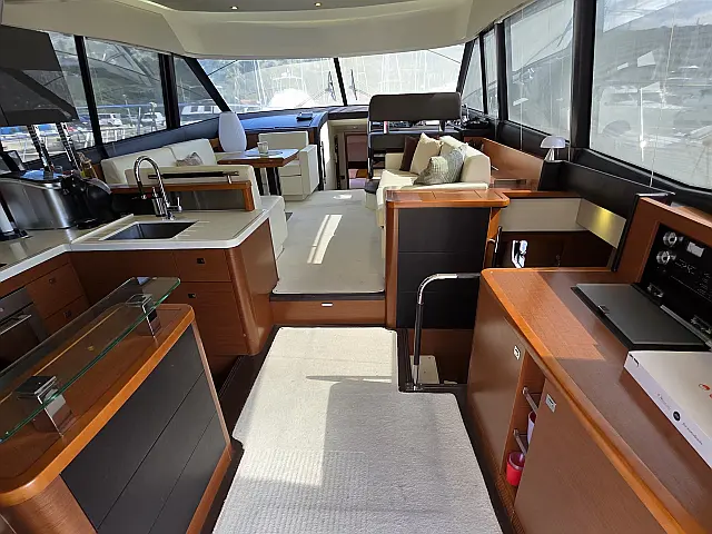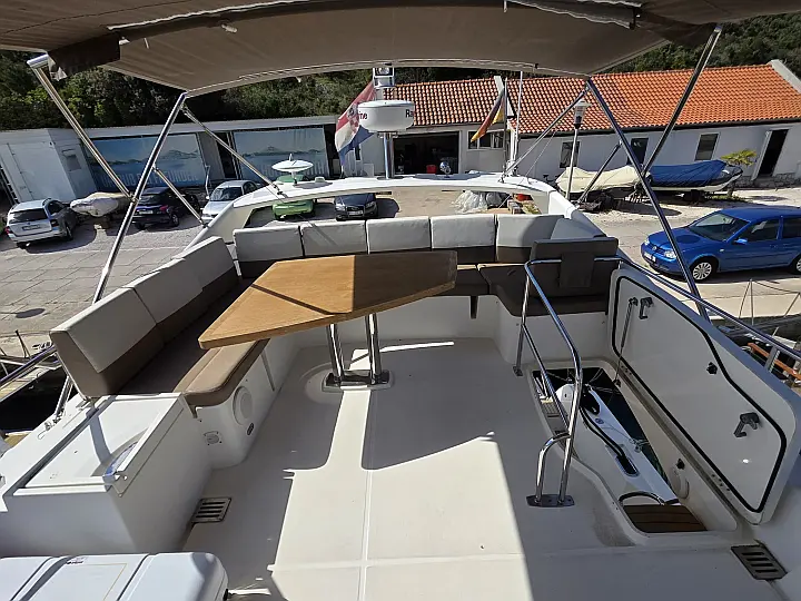 Ankerwinsch (true), Radio auf der Flybridge, Zusätzlicher Getränkekühlschrank flybridge, Sitzgruppe mit Tisch auf Fly, Komplett Persenning, Absenkbare Badeplattform, 50 Meter verzinkte Ankerkette, Elektroherd 220 V mit Backrohr (true), 2 Hebel Micro-Commander Schaltung (true), Generator (true), Kühlschrank 12V, Heckdusche, Navigationssystem, Komplette Instrumentierung, Tiefenmesser (true), Elektrische Ankerwinsch, Hydraulische Gangway, Sonnenliege auf Bug, Elektrische Toilette (true), Beiboot (true), Flybridge (true), Sonnenliege auf Fly, Klimaanlage (true), Bugstrahlruder, IPS Antrieb mit Joysticksteuerung, Geschirrspüller, Heckwinsch, Washmachine, TV (true), Badeleiter, Stauraum, Skipperkabine im Heck, Teak im Plicht, Trimmklappen, Teak auf badeplatform, Kompas Fly