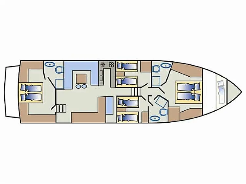 Die 4 geräumigen Doppelkabinen- 2 mit Doppelbetten, 2 mit Einzelbetten - 3 Badezimmer, ein schöner