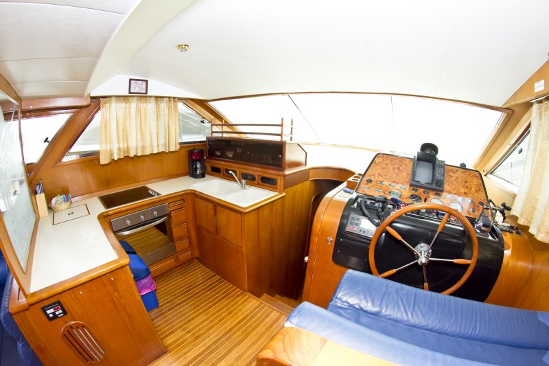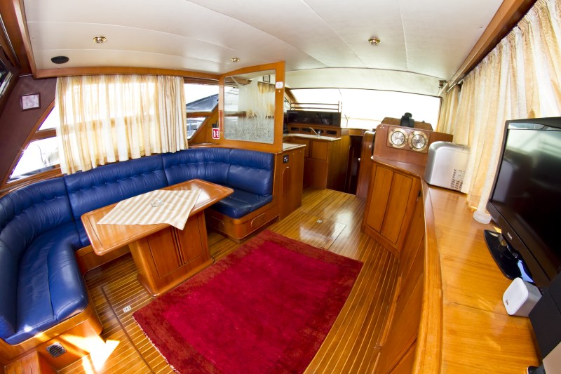 Wohnbereich mit separater Küche - alles mit edlem Teakholz eingerichtet - ein Yacht-Flair, von dem jeder Bootsfan