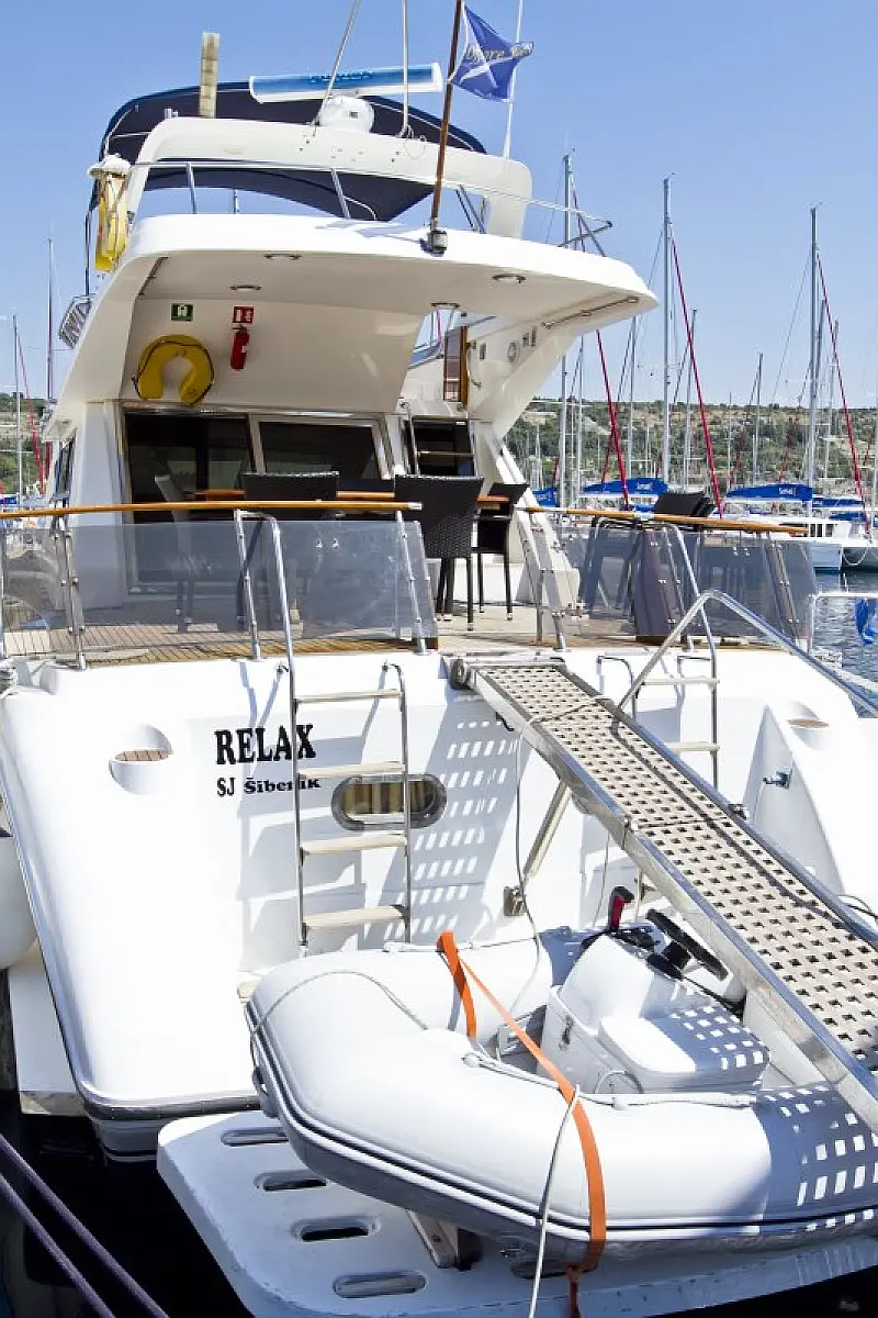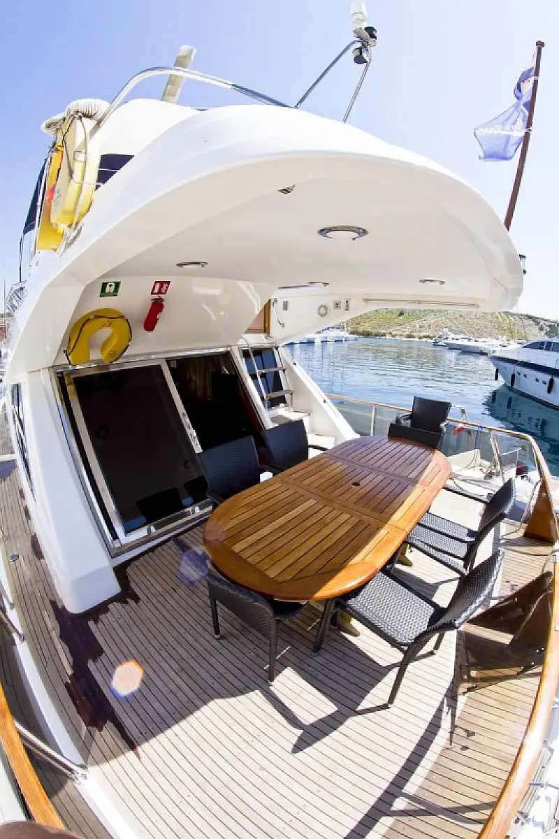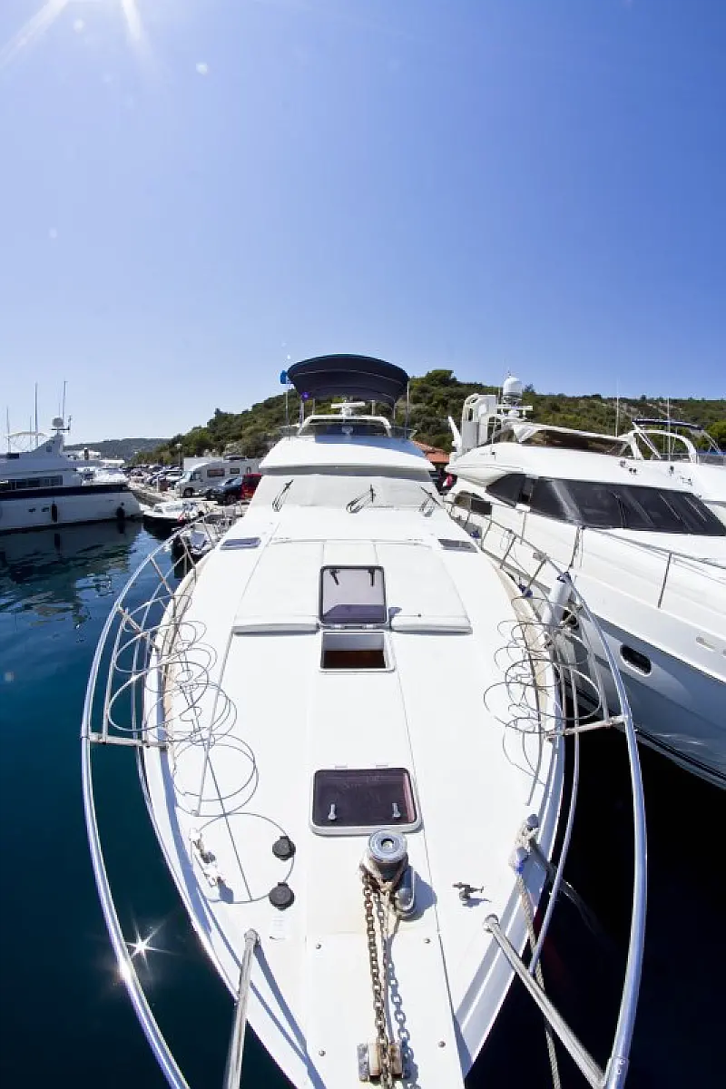 Sitzgruppe mit Tisch auf Fly, Zusätzlicher Getränkekühlschrank flybridge, Sitzgruppe mit Tisch auf Fly, Skipperkabine im Bug, Absenkbare Badeplattform, 80 Meter verzinkte Ankerkette (true), Kühlschrank 12 V / ca. 120 l, Schwerer Anker verzinkt, 2 Hebel Micro-Commander Schaltung (true), Generator (true), CD / USB Radio, Elektroherd 220V, Heckdusche, Navigationssystem, Komplette Instrumentierung, Tiefenmesser (true), Autopilo Raymarine (true), Elektrische Ankerwinsch, Hydraulische Gangway, Sonnenliege auf Bug, Elektrische Toilette (true), Internet Router WLAN, Bimini Top (true), Flybridge (true), Sonnenliege auf Fly, Klimaanlage (true), Bugstrahlruder, Eismachine, Radar, Tisch im cockpit, Stauraum, Kompas, Teak im Plicht, GPS Fly Lowrance HDS7m, Trimmklappen, Kompas Fly