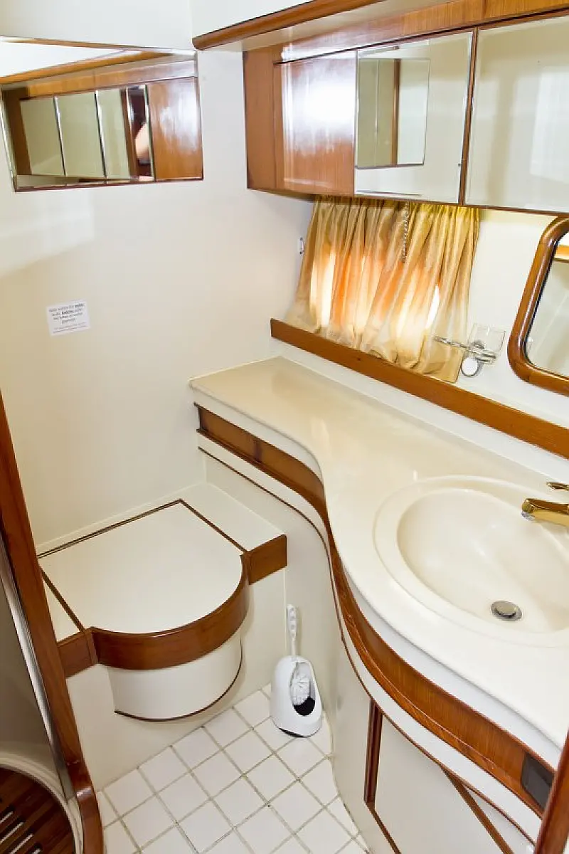 Die Yacht ist auch mit einem Autopiloten, einem Generator und Klimaanlage ausgestattet.