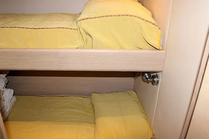 depth gauge, reserve anchor (true), electronic anchor winch (true), VHF radio Raymarine, nautical charts, navigational tool kit, fire extinguisher, harbor guides, signal rockets, reserve oil (true), reserve filter, ropes (true), stereo-radio / CD / mp3, board tool kit, refrigerator, hot water system, battery charger, deck shower (true), bathing platform, bed clothes, table ware, coffee machine/ Nesspresso, glasses, water cooker, dish towels, cutlery (true), guide for technical equipment, life jacket