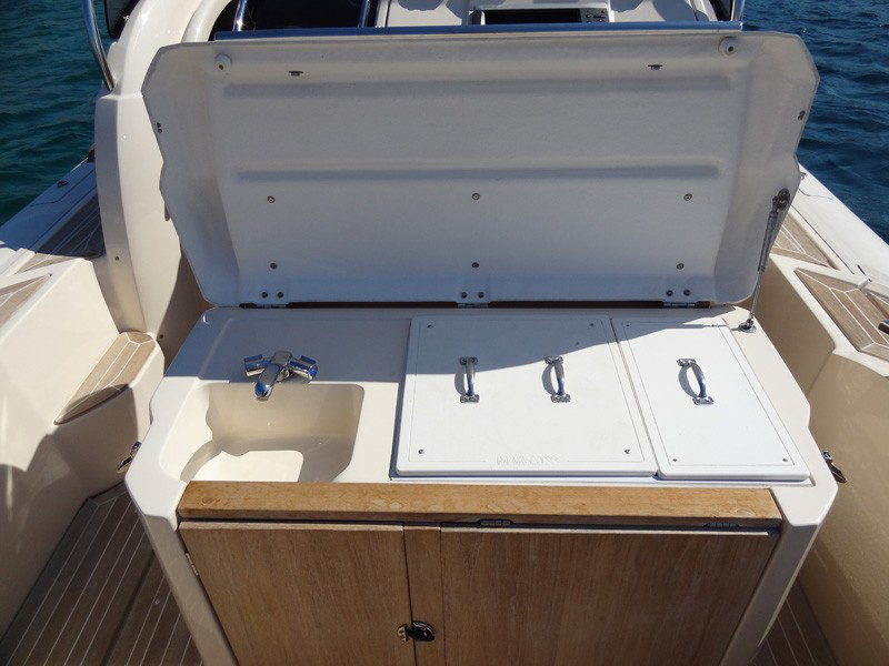 ladder and the practical cockpit shower with hot and cold water are part of the equipment.
