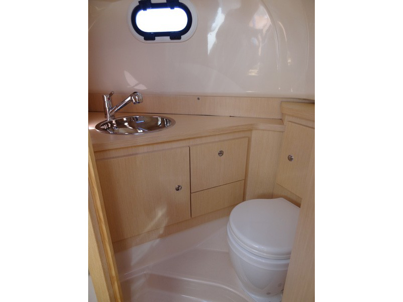 Cabin for 2 Person, GPS / Plotter, Lowerable table for sun lounger in the cockpit, Bathroom with wash basin, 2-stick electronic gear (true), Heavy anchor galvanized, 50 m galvanized anchor chain, Stern shower, Navigation system, Complete instruments, Depth meter (true), Electric windlass, Refrigerator in cockpit, Sun lounge on the bow, Electric toilettes (true), Internet Router WLAN, Wet bar in the cockpit, Table in the cockpit, Bathing platform