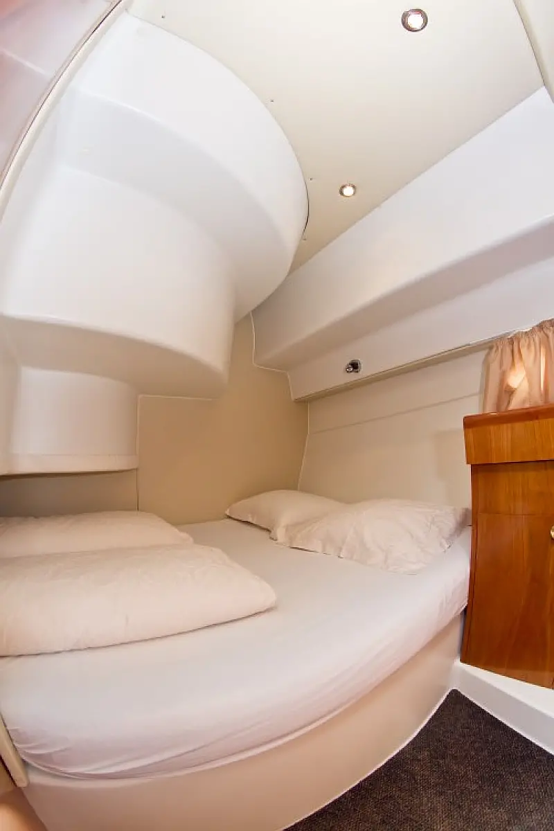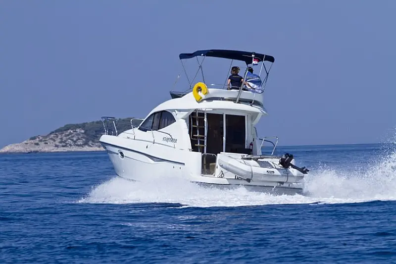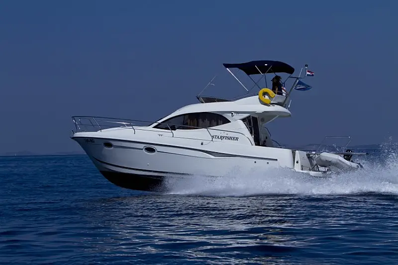Small but perfectly formed, with the Star Fisher 34 we now have the perfect Family yacht on the cutting edge of technology. With a beautiful living room with integrated kitchen and a cosy Round couch a large bathroom with shower, a spacious owner's cabin and guest cabin with private small washstand is the Star Fisher 34, the optimal ship for small family and beginners. From the comfortable and clearly arranged Flybridge the yacht can be easily controlled, and thanks Your 2 x 220 hp and top speed of more than 30 knots Handling characteristics like a sports boat.