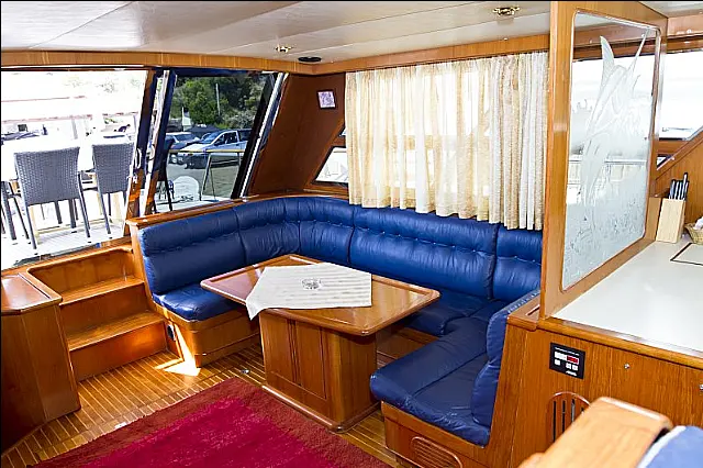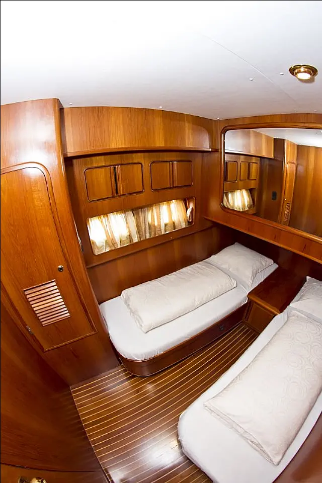 Living room suite with table on the flybridge, Additional refrigerator for drinks flybridge, Seating area with table on the flybridge, Skipper cabin in the bow, Bathing platform can be lowered, 80 m galvanized anchor chain (true), Refrigerator 12 V / approx. 120 l, Heavy anchor galvanized, 2-stick micro-commander gear (true), Generator (true), CD / USB Radio, Electric stove 220V, Stern shower, Navigation system, Complete instruments, Depth meter (true), Autopilot Raymarine (true), Electric windlass, Hydraulic gangway, Sun lounge on the bow, Electric toilettes (true), Internet Router WLAN, Bimini top (true), Flybridge (true), Sun lounge on the flybridge, Air condition (true), Bowthruster, Ice maker, Radar, Table in the cockpit, Storage space, kompas, Teak im Cockpit, GPS Fly Lowrance HDS7m, Flaps, Kompas Fly