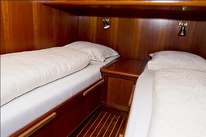 The 4 roomy double cabins - 2 with double beds, 2 with single beds - 3 bathrooms,